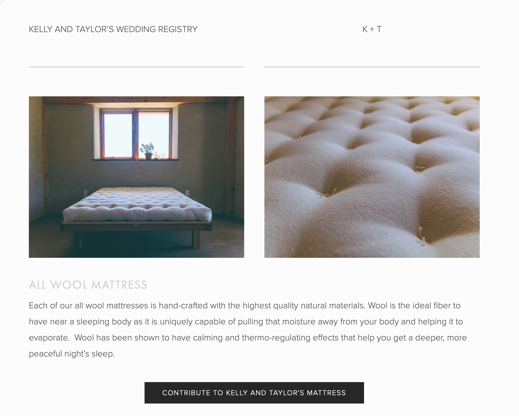 Design a personalized and private page that just you and your guest list can access such (examples pictured here). Pick the items you’d like to include, and your guests can contribute any amount up to the full amount of the item. For each registry we create individualized url that you can pass on to your guests for an easy gift-buying experience. Contact us at info@shepherdsdream.ca to set yours up today.